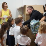 Máthé Gabriella tanitónő játékokkal derítette még jobb kedvre a kisdiákokat, a szülőkön is részt vehettek ezen az első órán. Póti Eduárd iskolaigazgató a Rákóczi Szövetség nagyköveteként is érkezett az osztályba és Elek Kinga aligazgatónővel együtt átadták a szövetség ajándékát, egy-egy iskolatáskát minden gyermeknek. Volt fiús és lányos hátitáska is, amit szétosztottak az ajándékot boldogan átvevő gyerekek között. Igazgató úr megköszönte a szülők bizalmát, és biztosította őket arról, hogy a lehető legjobb helyre bízták gyermekeiket. Isten vezesse útjukat!