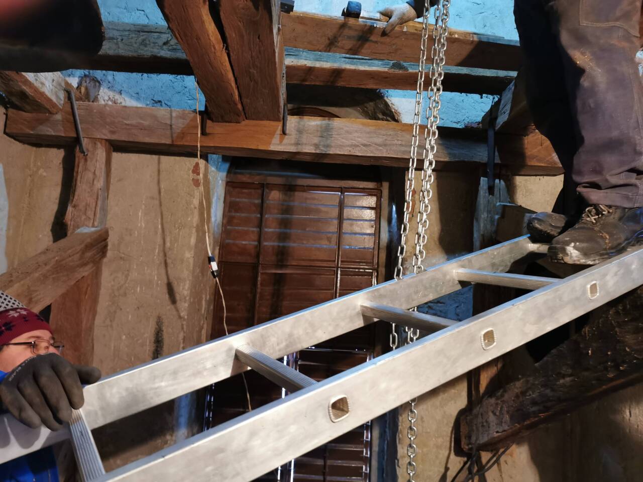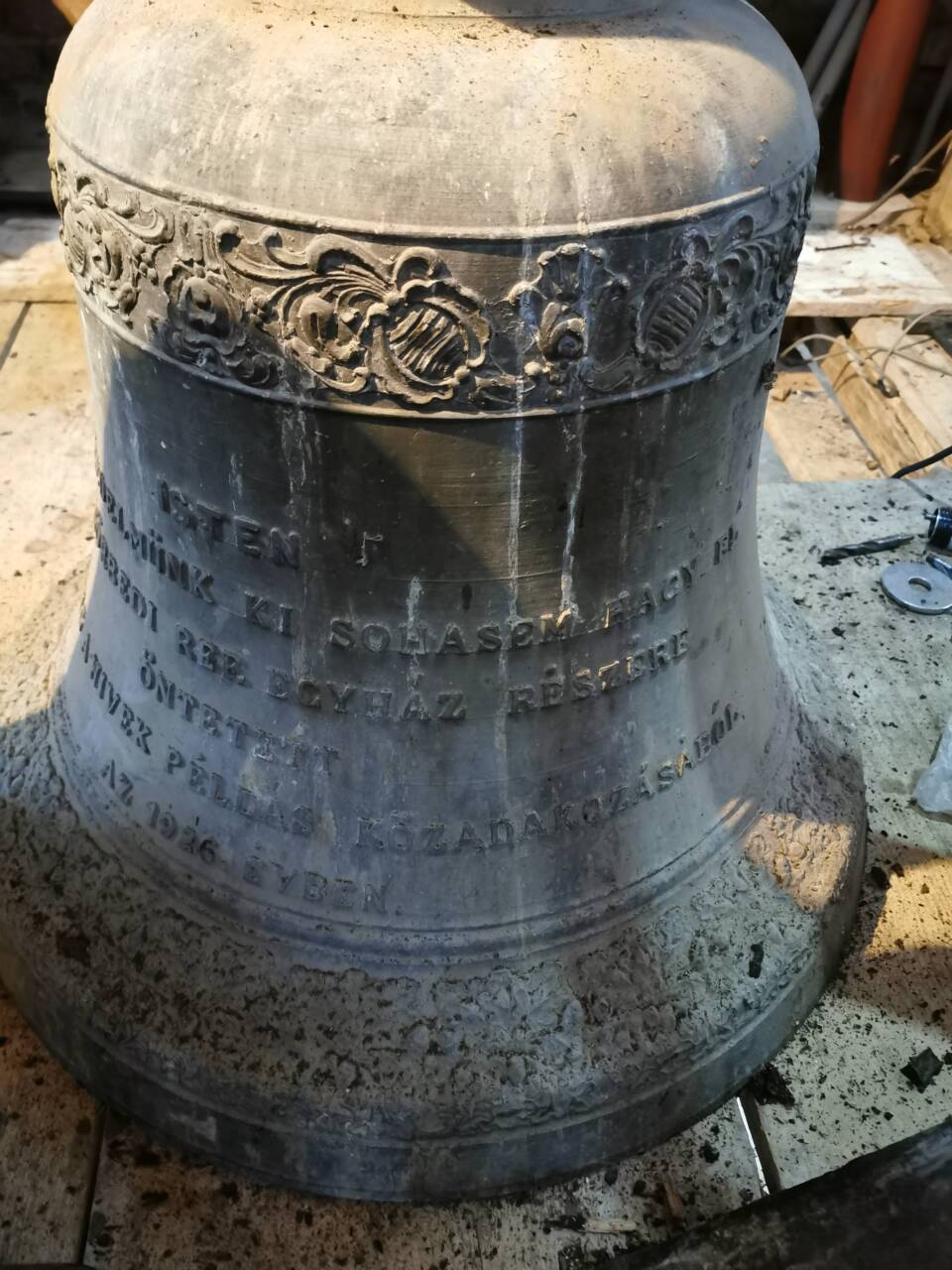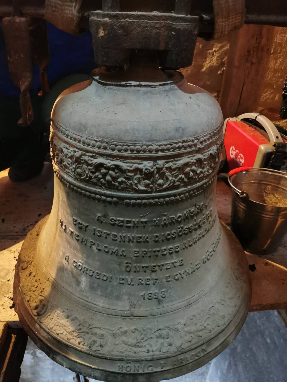 Papp Gyula vállalkozó, és Deák László kivitelező mérnök urak jóvoltából ezen a napon egy 4 fős csapat jött el, élükön a Quasi-Modo Kft. képviselőjével/vezetőjével, hogy gyülekezetünk harangjait modernizálják, automatizálják.