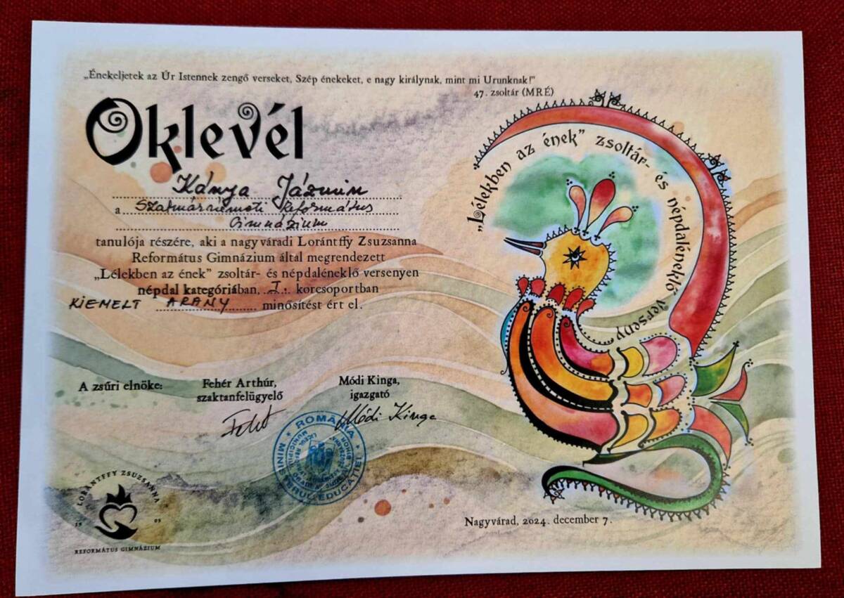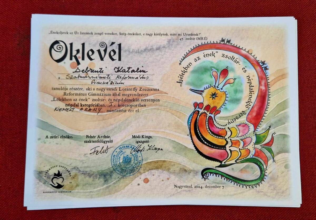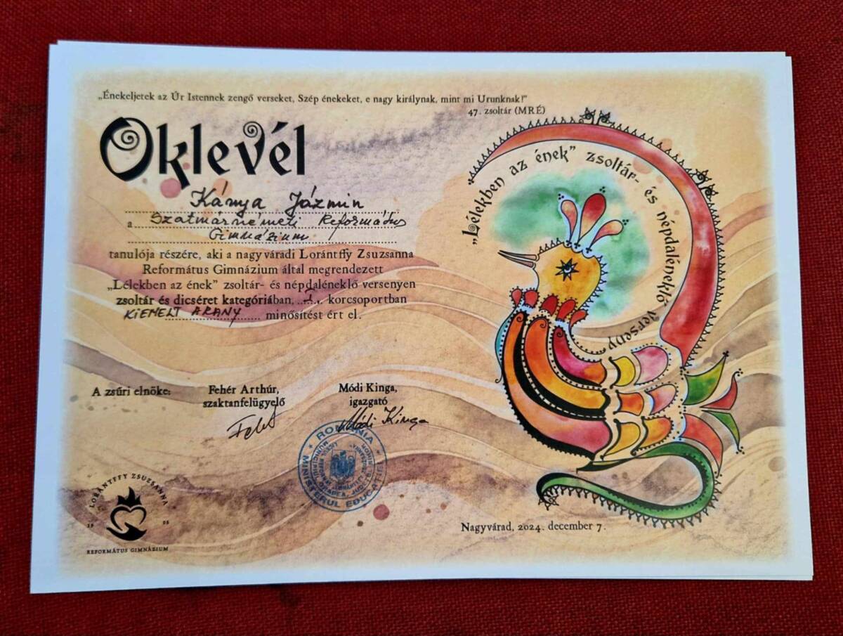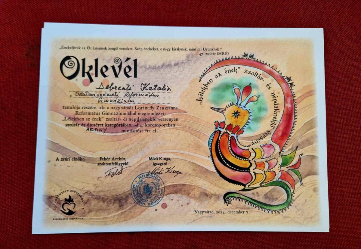 Immár hetedik alkalommal rendezte meg december 7-én a nagyváradi Lórántffy Zsuzsanna Református Gimnázium a „Lélekben az ének” országos zsoltár- és népdaléneklő versenyt, amelyről az idén is szép eredményekkel térhettek haza a szatmári résztvevők.