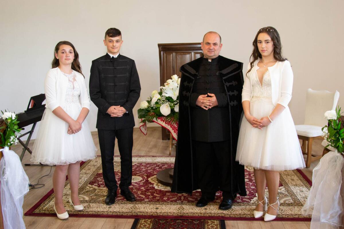 Kiemelte, hogy ami igazán értelmet és értéket ad az életünknek, az a szeretet. Mennyire tudjuk becsülni, tisztelni és szeretni egymást. Konfirmálni 2023-ban nem azt jelenti, hogy ismerem a Heidelbergi káté mind a 129. kérdésének válaszát, hanem azt, szeretem Jézust, Istent s ez által szeretni tudom a másik embert is. Az ifjak kellő alapossággal és felkészültséggel válaszoltak az igehirdetést követően a nekik feltett kérdésekre. Áldott együttlét, örömteli pillanatok voltak ezek, melyek azt hirdetik az egyházmegye legfiatalabb templomának jelene és jövője van. Az istentisztelet végén lelkipásztor megköszönte mindenkinek a bizalmat, a lelki ajándékokat.