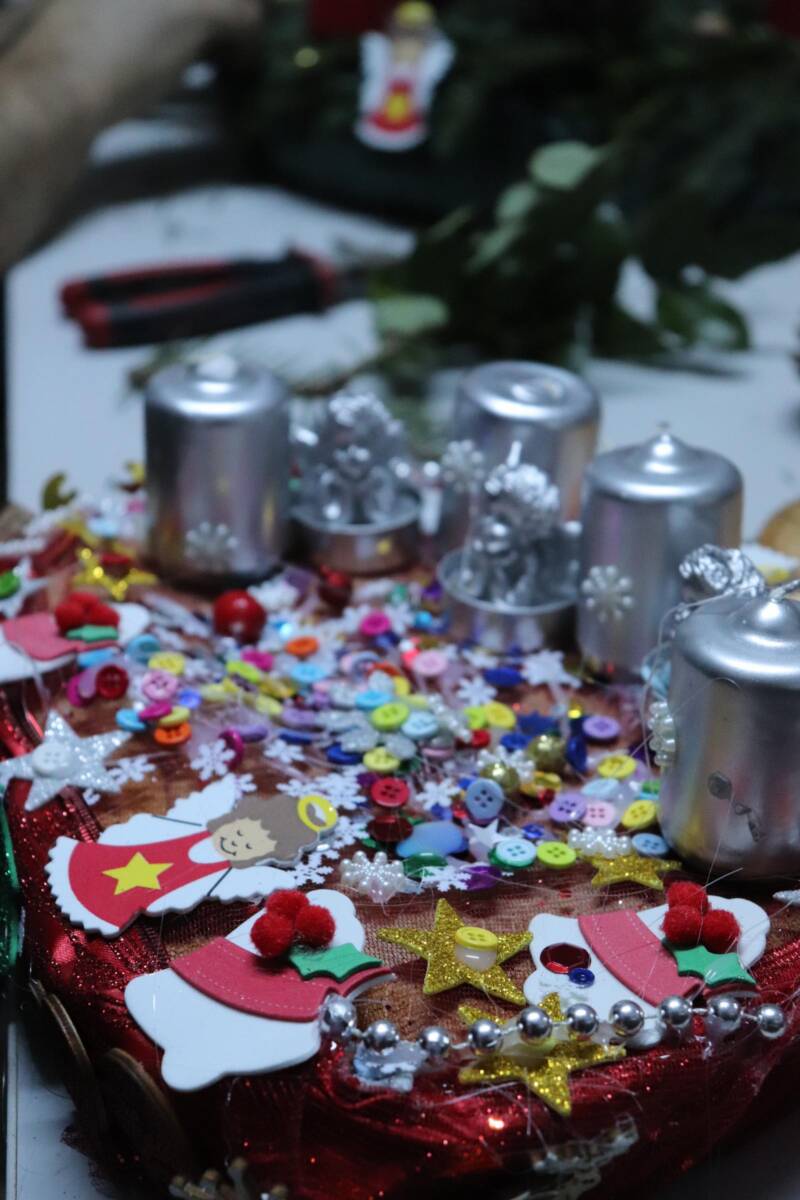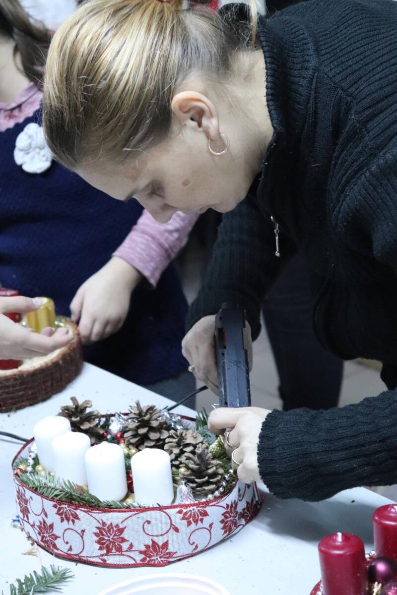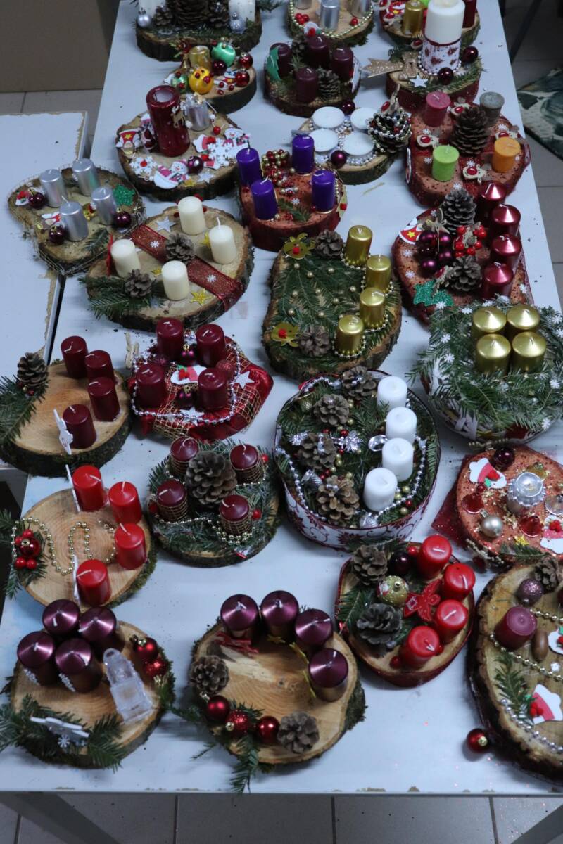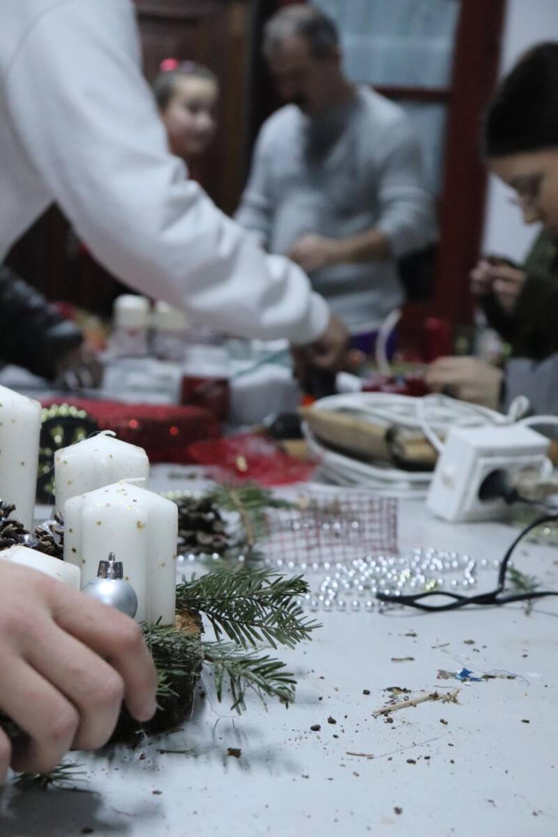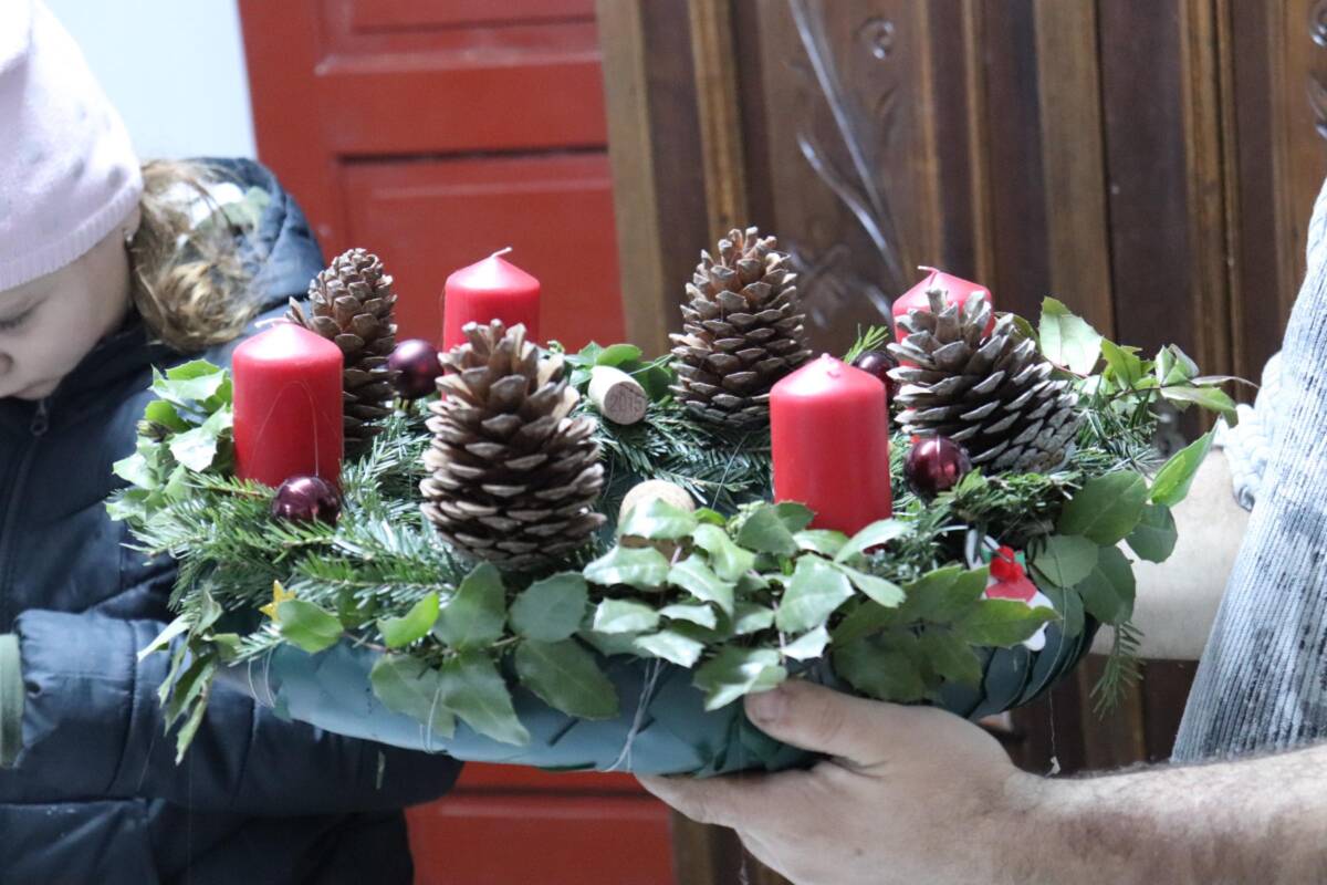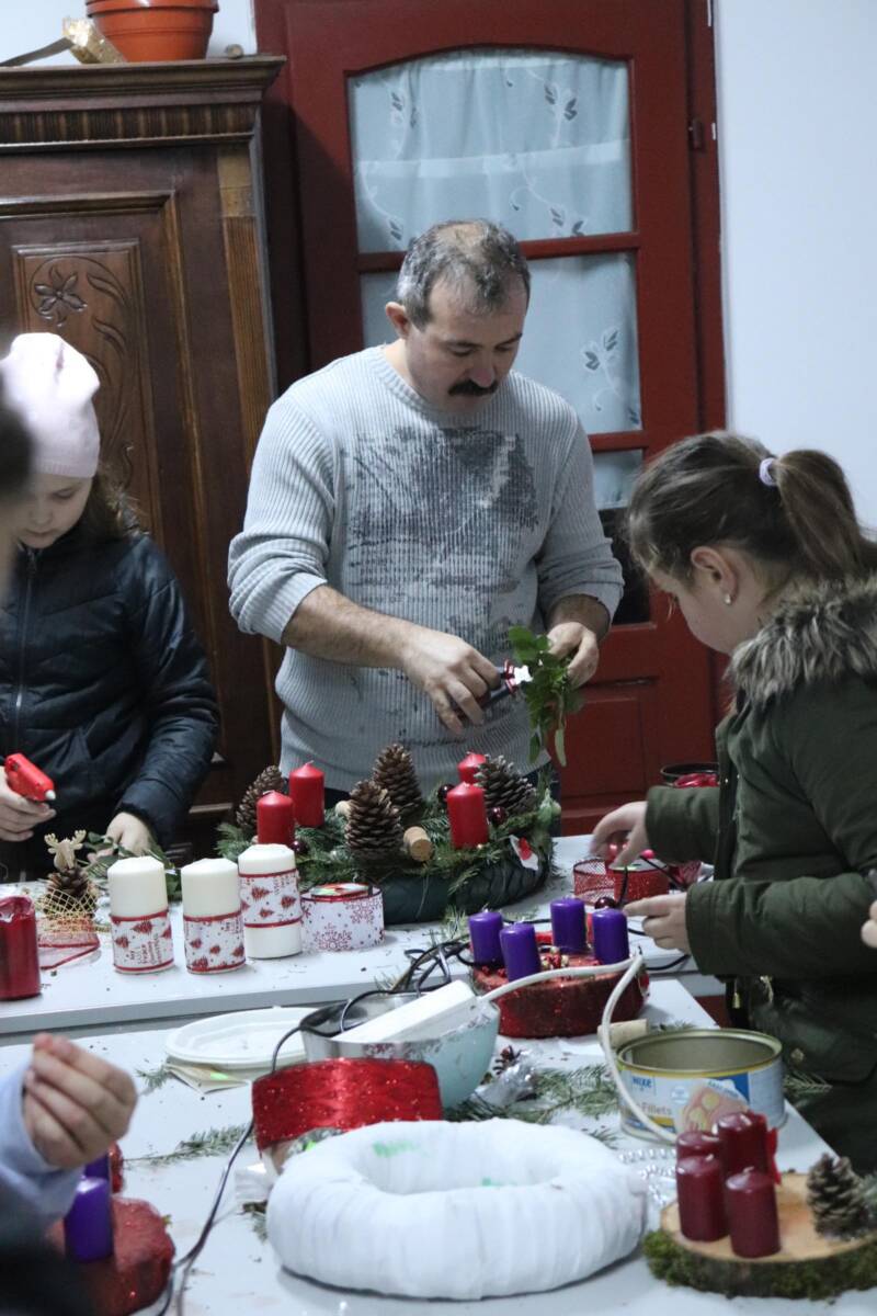 A gyermekek szinte egész esztendőn át készültek erre az eseményre, hiszen hetek óta gyűjtötték a tobozokat, diókat, makkokat, fonták a koszorúalapokat, szárították a citrom- és narancsgurigákat, és az elmúlt napokban közös hecserli, galagonya, kökény és borostyángyűjtésre indultak az elaludni készülő természetben. Alapanyag tehát bőséggel volt, mindenkinek jutott mindenből és készültek a szebbnél szebb koszorúk, ajtó- és asztalidíszek. A gyerekek újra elkészítették együtt a templomba szánt koszorút, melynek gyertyáit vasárnapról-vasárnapra közösen gyújtanak meg.