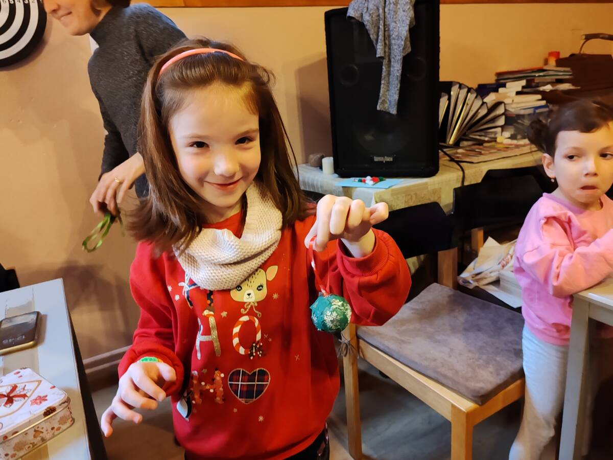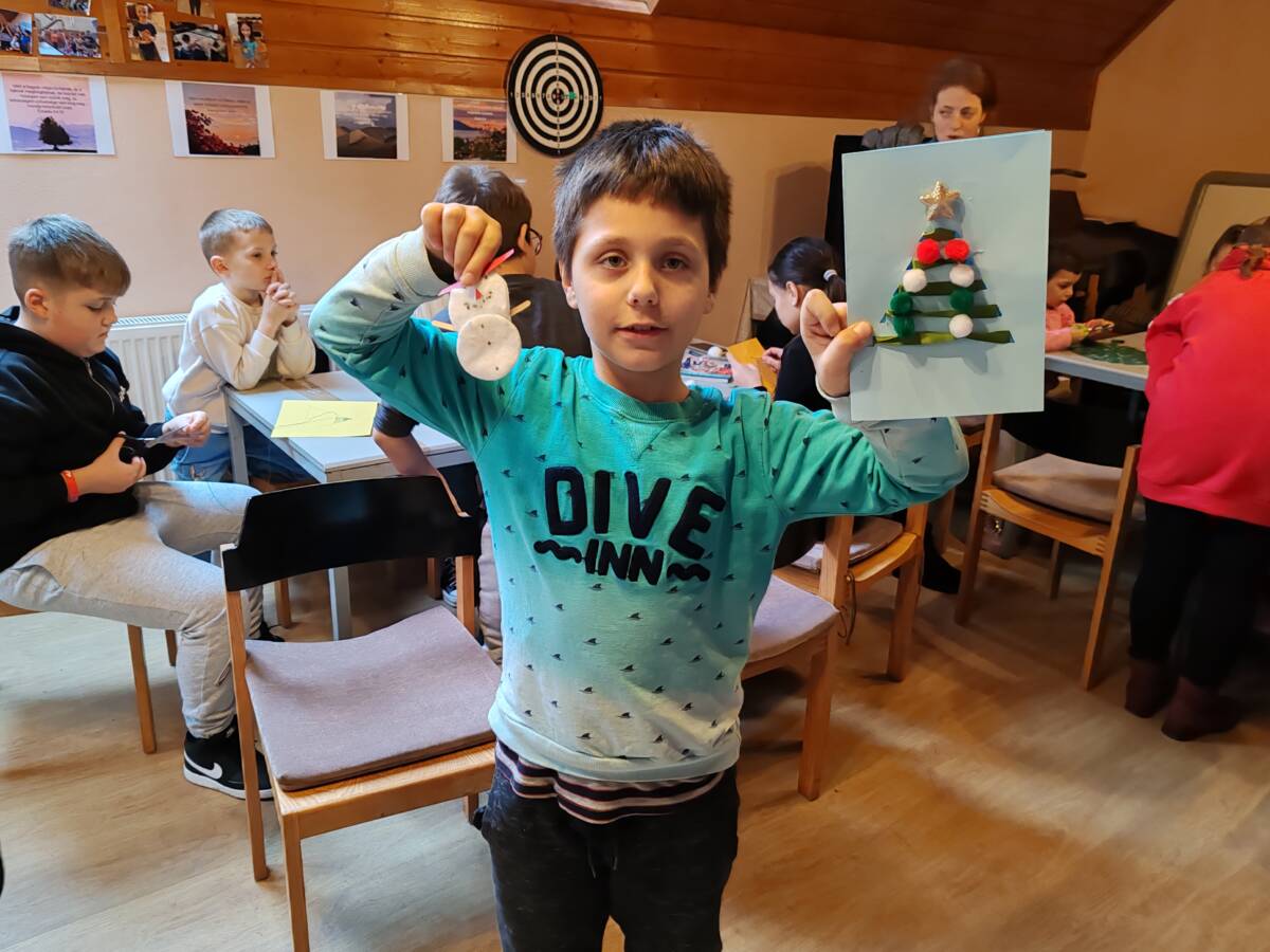A legkisebbek is ügyeskedtek tehát, készültek a karácsonyfadíszek és képeslapok. A vallásórások részt vehettek egy karácsonyra hangolódó foglalkozáson. Játszottak, énekeltek, kézműveskedtek. Áldott és vidám alkalom volt.