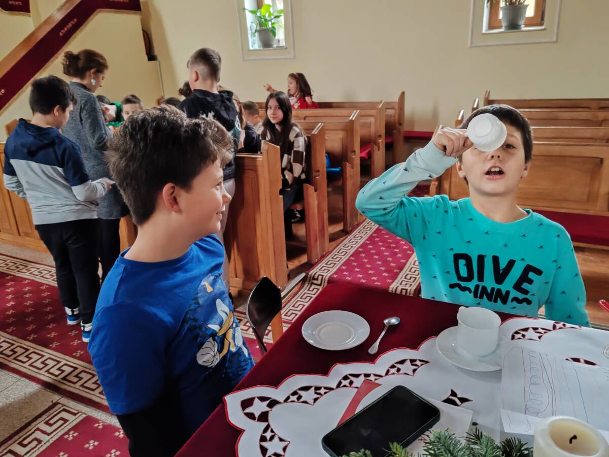 Kocsis Leila segédlelkész adventi üzenetekkel, karácsonyi énekekkel, érdekes játékokkal, kézműves foglalkozásokkal készült. Az ifjak segítettek neki. A lelki feltöltődés mellett nem hiányozhatott a testi táplálék sem. A bennünk kiscsengőként felhangzó üzenet lényegéről szólt a tanitás.