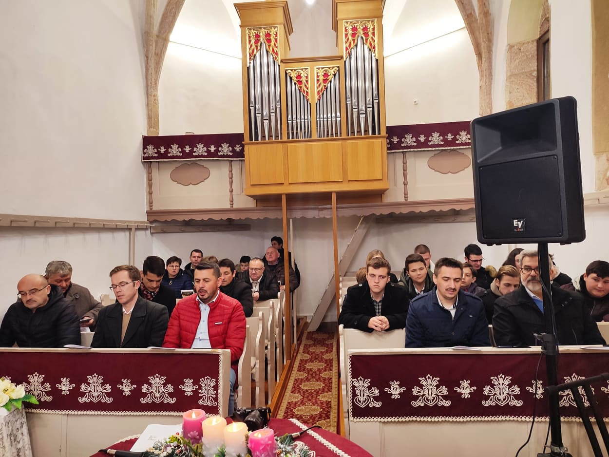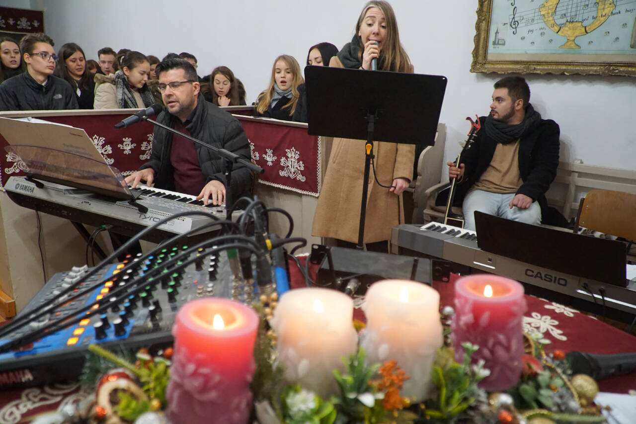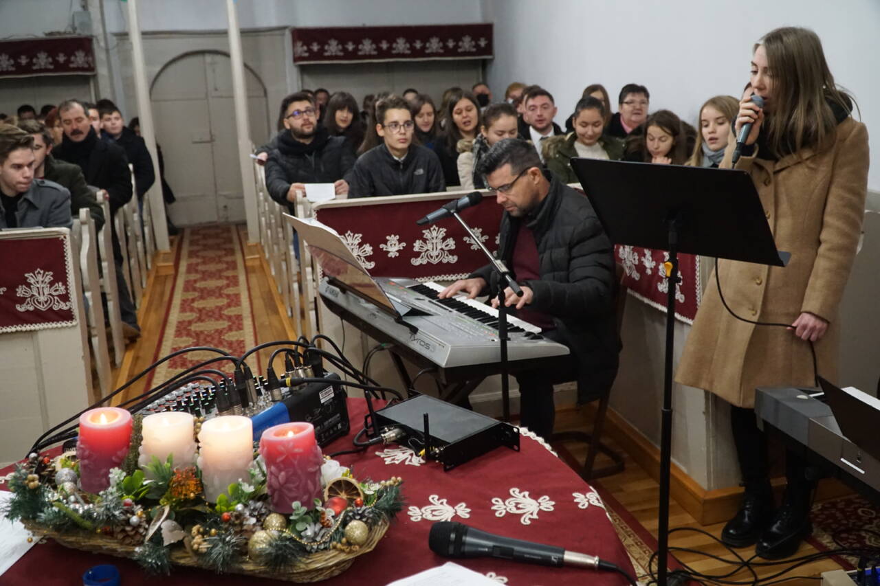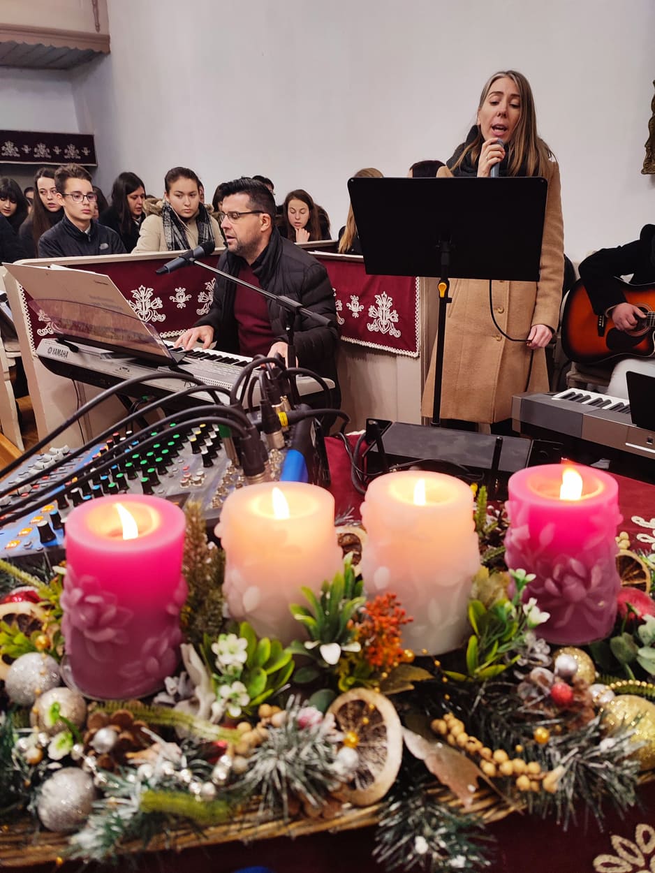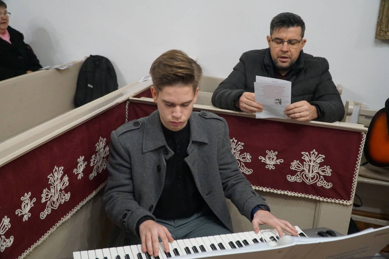 Dr. Király Lajos esperes és dr. Puskás Csaba főgondnok is jelen volt az ünnepre hangoló ifjúsági alkalmon. Előbbi köszöntötte is az ifjakat, majd a szintén szigetlankai Lanka Duó vette át az énekszót: szállt a hír arról, aki kisgyermekként jött el, megváltóként ment el és királyként jön vissza újra.