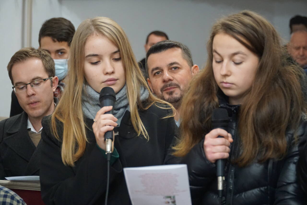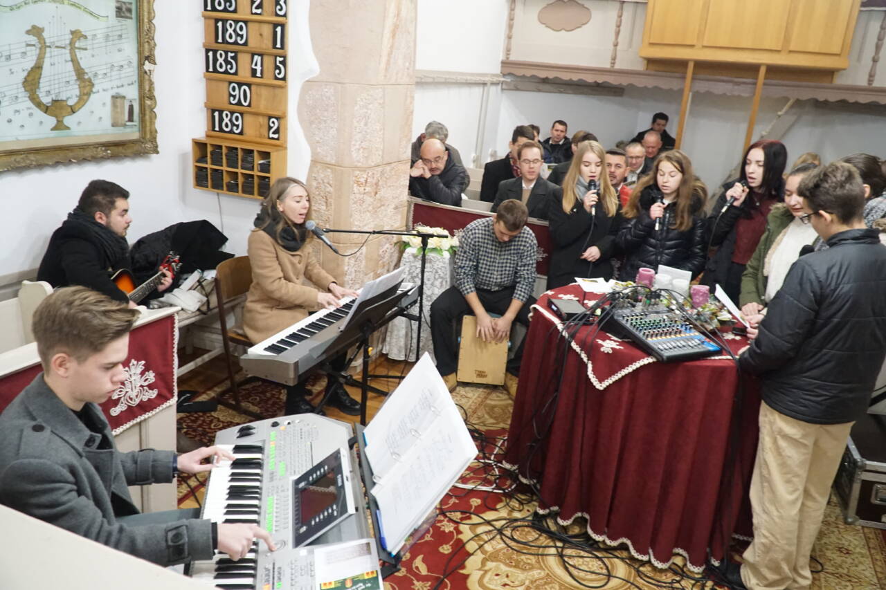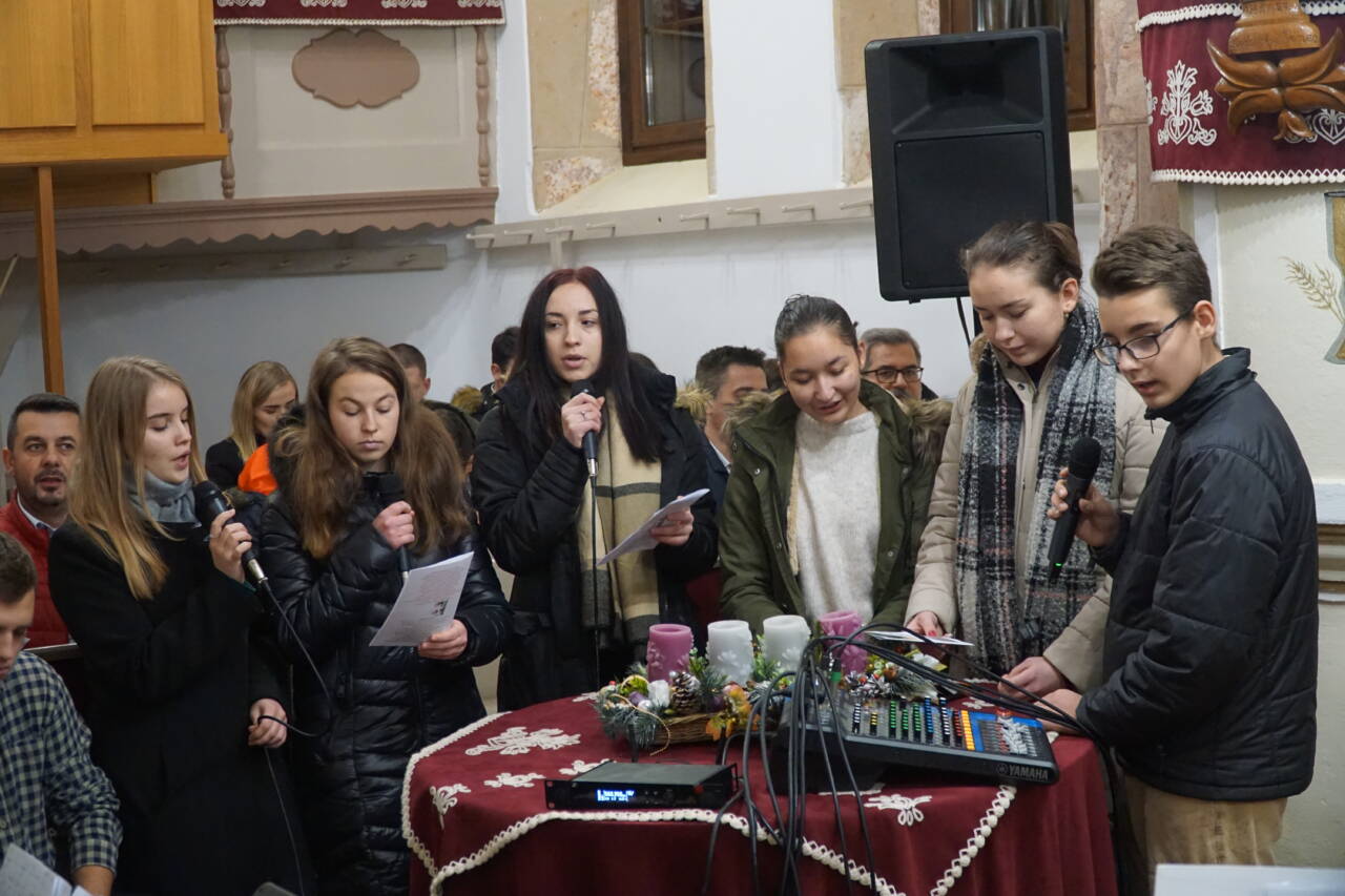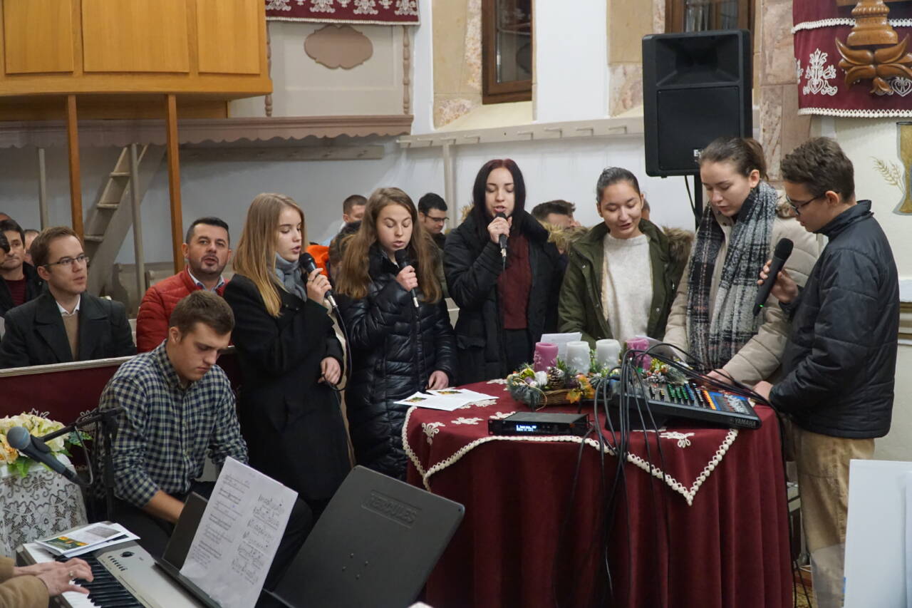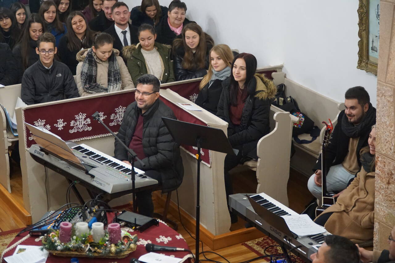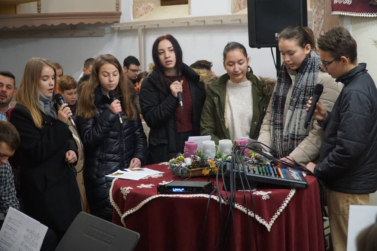 Dr. Király Lajos esperes és dr. Puskás Csaba főgondnok is jelen volt az ünnepre hangoló ifjúsági alkalmon. Előbbi köszöntötte is az ifjakat, majd a szintén szigetlankai Lanka Duó vette át az énekszót: szállt a hír arról, aki kisgyermekként jött el, megváltóként ment el és királyként jön vissza újra.
