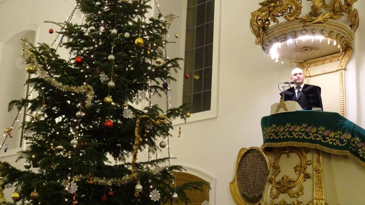 Ünnep első napján délelőtt Mátyási Gerda Georgina segédlelkész prédikált a Lukács evangéliuma 2. részének 8. verse alapján: „Valának pedig pásztorok azon a vidéken, akik künn a mezőn tanyáztak és vigyáztak éjszakán az ő nyájok mellett.” A karácsony nem csupán egy szép emlékünnep, hanem folyamatos, történik, velünk is megtörténhet. Ha ott vagyunk, figyelünk, nem megyünk el vakon mellette, és meghalljuk a személyesen szóló örömhírt. Figyeljünk Istenre, figyeljünk egymásra! – biztatott az igehirdető.