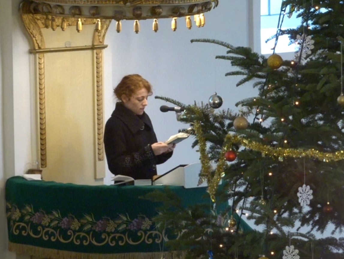 Karácsony másodnapja délelőttjén Csatári Leila ünnepi legátus, a Német gyülekezet teológusa prédikált Ézsaiás könyve 52. részének 7-től 10-ig terjedő versei alapján. „Milyen szépek a hegyeken az örömhírt mondó lábai, aki békességet hirdet, jó hírt mond, szabadulást hirdet, aki azt mondja Sionnak: Istened uralkodik! Halld, őrállóid fölemelik hangjukat, együtt ujjonganak, mert szemtől szemben látják, hogy miként tér vissza Sionra az ÚR! Ujjongva énekeljetek mindnyájan, Jeruzsálem romjai, mert megvigasztalta népét az ÚR, megváltotta Jeruzsálemet! Feltűrte szent karját az ÚR minden nép szeme láttára, hogy lássák a föld minden határán Istenünk szabadítását!” Karácsonykor megkaptuk a jó hírt: üdvözítő született nekünk. Ez felveti a kérdést: nekünk van-e üdvösségünk, örök életünk? Isten gondoskodott arról, hogy majd egykor sokkal jobb helyen legyünk, ahol most vagyunk, de erről érdemes már egészen fiatal korban elgondolkodni. – szólt a személyes bizonyságtétel.