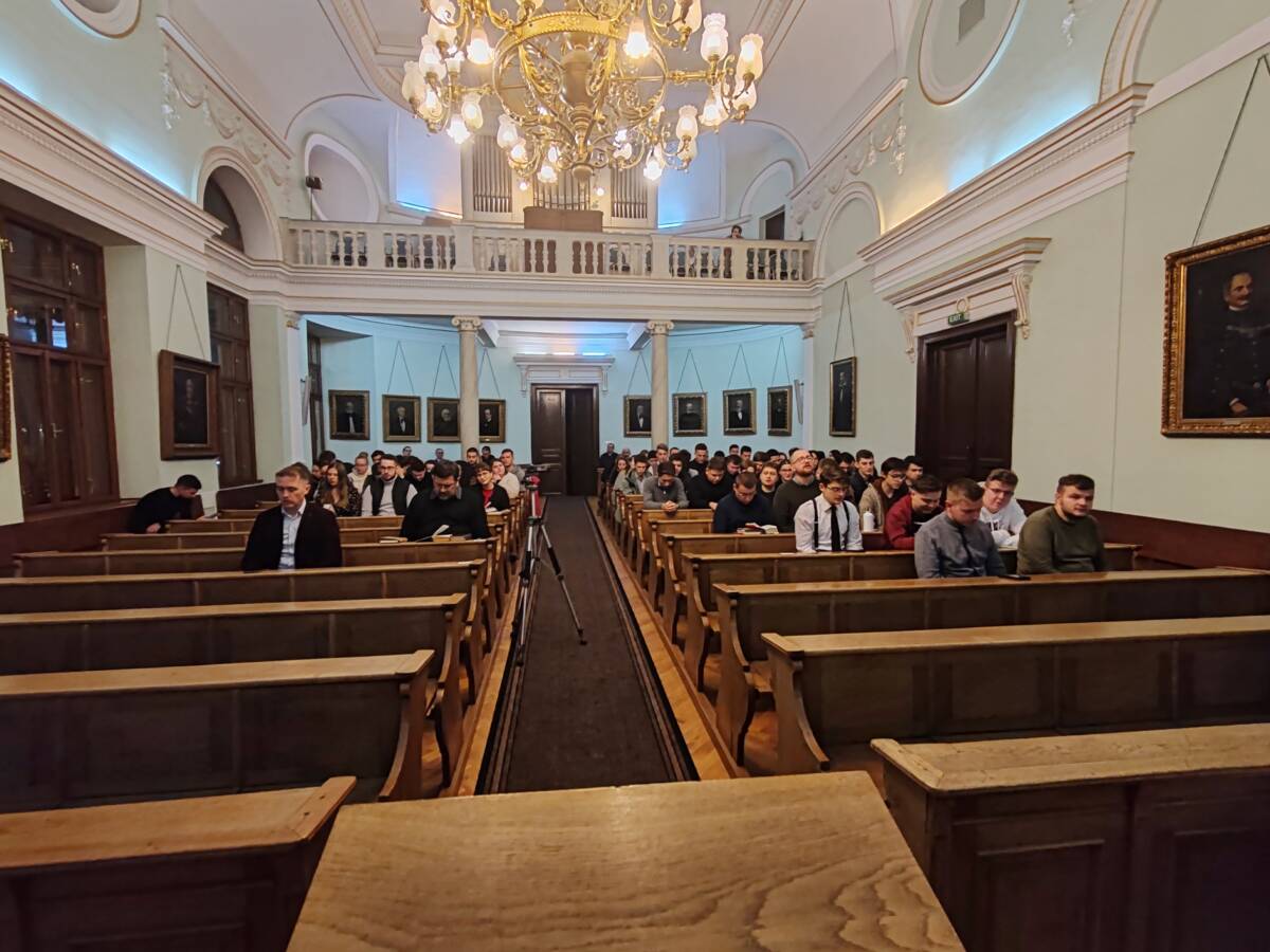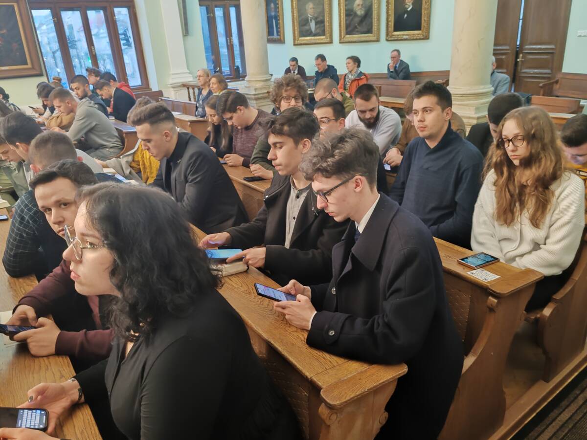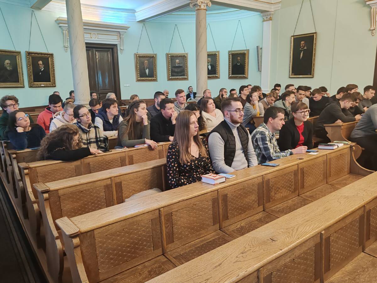 Egyébként az igehirdető volt évfolyamtársai tartottak előadást aznap a teológusoknak, volt tehát egy mini-évfolyamtalálkozó is, 2007-es kiadású, kibocsátású. Nagy Gábor és Pap Ákos lelkipásztorok arról szóltak a teológiai hallgatóknak, hogyan készülnek együtt immár másfél évtizede, szinte minden vasárnapra, a délelőtti istentiszteletre úgy, hogy kilométerek választják őket el egymástól. Érdekes volt hallani a prédikációra való készülés ily módszerét.