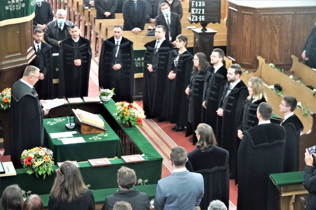 Forró László egyházkerületi főjegyző felvette az a felszentelendő lelkipásztorok fogadalmát. Tizenketten voltak mint az apostolok, név szerint: Adorján Dávid (Resica), Erdei Márk Sándor (Gálospetri), Fehérvári Zsolt (Magyarkakucs), Gál Ervin (Borosjenő), Kabai Kitty (Nagyvárad-Rét), Mpofo Kitata Szilvia (Arad-Mosócz), Nagy Sándor-Csongor (Nagykároly-Kertváros), Oláh Krisztián (Érselénd), Sólyom Szabina-Brigitta (Kismajtény), Tököly Csaba-Krisztián (Zsombolya), Törő Attila-Miklós (Szatmár-Németi, Patóháza), Tőtős Emese-Brititta (Szilágyborzás). A lelkipásztor életének egyik legnagyobb eseménye a felszentelés, amikor egy püspök, vagy éppen egyházmegyéjének esperese kézrátétellel áldó Igét mond, amit letérdelve fogad. Ez alkalommal az a különös és megható esemény is megtörténhetett, hogy apa fiának (Nagy Sándor, Nagy Sándor-Csongor) adta az áldást. A felszentelendő lelkészek nevében Gál Ervin szólt a gyülekezethez.